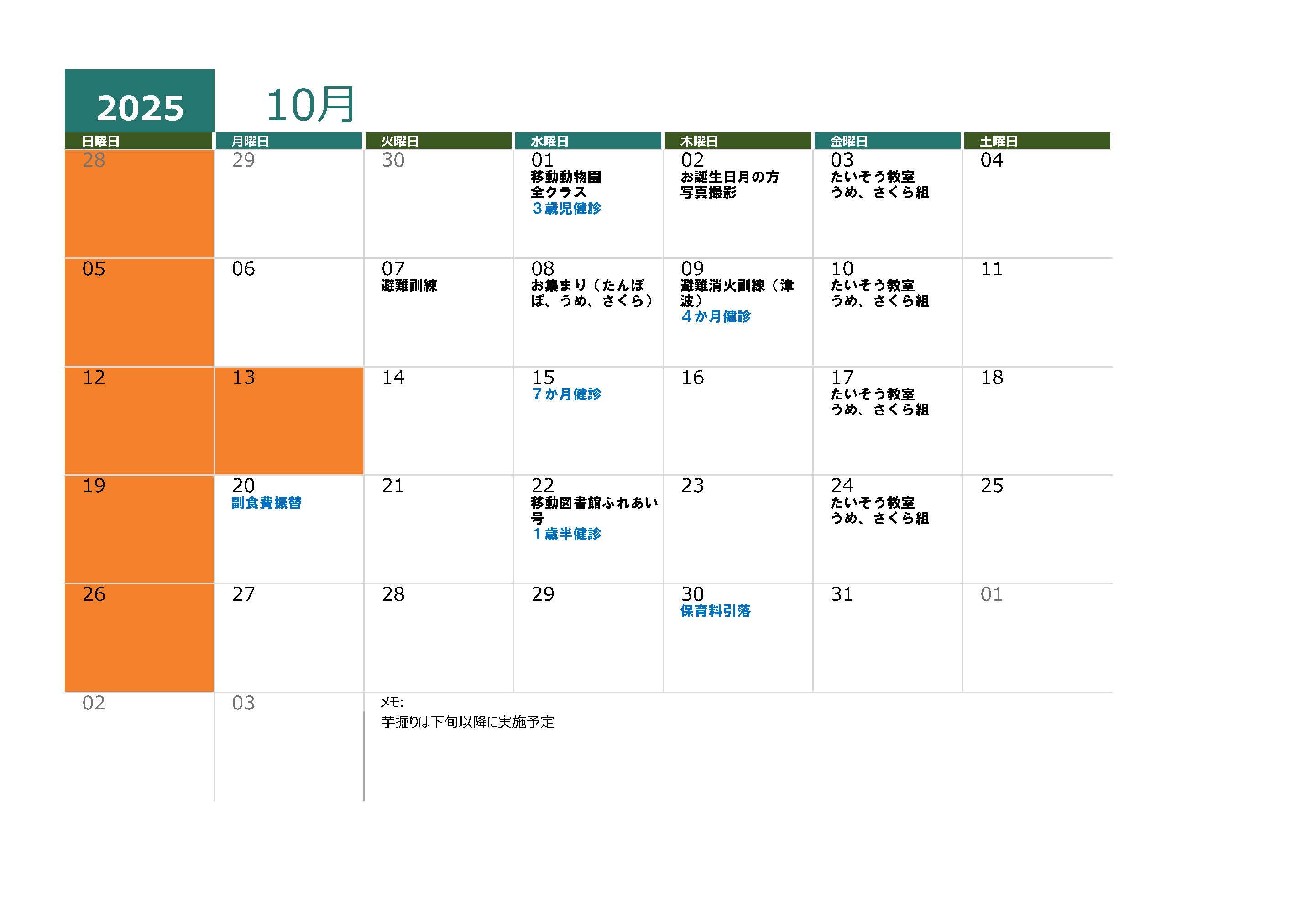 これから過ごしやすくなる季節ですが、夏の疲れも出てくる頃です。早寝早起き、しっかり食事を摂り、秋の自然に親しみながら元気に過ごせるようにしていきましょうね